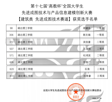 本网消息 7月25日—29日,第十七届全国大学生先进成图技术与产品信息建模创新大赛在贵州大学成功举办,ok138cn太阳集团环境设计专业8名参赛选手代表学校参加建筑类先进成图技术赛道的比赛。经过激烈角逐,斩获个人一等奖2项、二等奖5项、三等奖1项,并获赛事团体三等奖1项,获奖比例和质量均创历年新高。