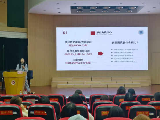 副会长栾诚、党委副书记赵兴分别详细讲解了职业生涯规划的重要性以及相关就业方向,帮助学生了解艺术行业的发展趋势、市场需求以及就业竞争状况,为学生制定职业目标提供有力的依据。