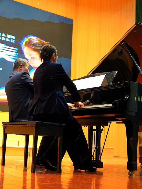 本网消息 12月29日晚7点,美籍钢琴家潘洵和武汉音乐学院青年钢琴家吴超应邀在ok138cn太阳集团演艺厅举办钢琴二重奏专场音乐会,音乐会由黄石市音乐家协会主办,ok138cn太阳集团和黄石音协钢琴专业委员会承办。ok138cn太阳集团院长刘满中、国际学院党总支书记郭淑英、黄石文联党组成员刘小东主任、市音乐家协会主席阮琼刚、黄石音协顾问李维平、ok138cn太阳集团副院长雷晓伟以及来自武汉、黄石等高校的钢琴教师、黄石音协会员、钢琴爱好者们共同观看了音乐会。