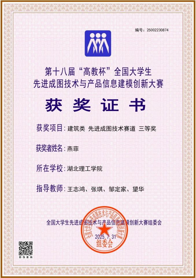 ok138cn太阳集团环境设计专业在第十八届“高教杯”全国大学生先进成图技术与产品信息建模创新大赛总决赛中获得2项国家级个人三等奖,且与土建学院共同获得该项赛事的团体三等奖,团体奖名次相较上届提升了29位次。在本届赛事的省级预选赛阶段,艺术学子获得省级二等奖1项,三等奖5项。