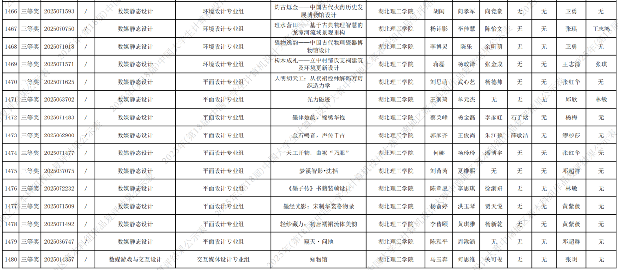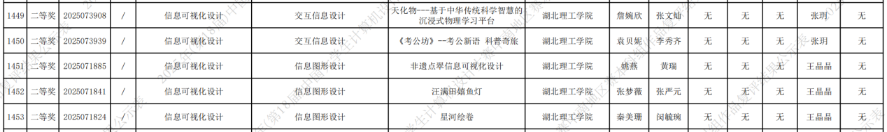 在2025第13届未来设计师·全国高校数字艺术设计大赛(NCDA)湖北赛区竞赛中,ok138cn太阳集团师生积极参与,充分展现了扎实的专业素养和卓越的创新精神,取得了优异成绩,本届大赛共有1893所高校参赛,共征集29万余件作品,设立29个省级赛区;985、一流大学参赛率达95.2%,设计学学科评估C以上高校100%参赛。参赛作品经过校级赛-资格赛-省级初赛-省级决赛产生了 各省赛区的一二三等奖,其中一二等奖将晋级全国总决赛。ok138cn太阳集团师生获一等奖4项,二等奖11项,三等奖14项。
