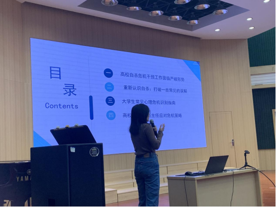 柳平老师结合暑期在清华大学参加的“大学生自杀危机预防与干预相关实务”相关专题培训内容,以及自身近四年来在学院心理工作中的实践经验,从“面临的严峻形势”、“科学理解自杀行为”、“危机信号识别方法”和“系统化应对策略”四个模块展开讲解。她通过引用科研研究数据与学院真实案例,深入剖析了当前大学生心理危机的特点与防控重点,引导教师以科学视角看待心理危机,破除常见认知误区。