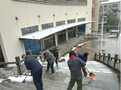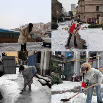 “积雪未化,车辆打滑,风险系数高,一定要注意安全!”2月26号正值开学前期,学院领导班子成员和部分党员教师顶着风雪一边铲雪,对道路积雪、和压垮的树枝进行清扫,一边提醒路过的老师们注意安全,做好道路畅通工作。“志愿红”与白雪交相辉映,成为冬日里一道靓丽的风景线。